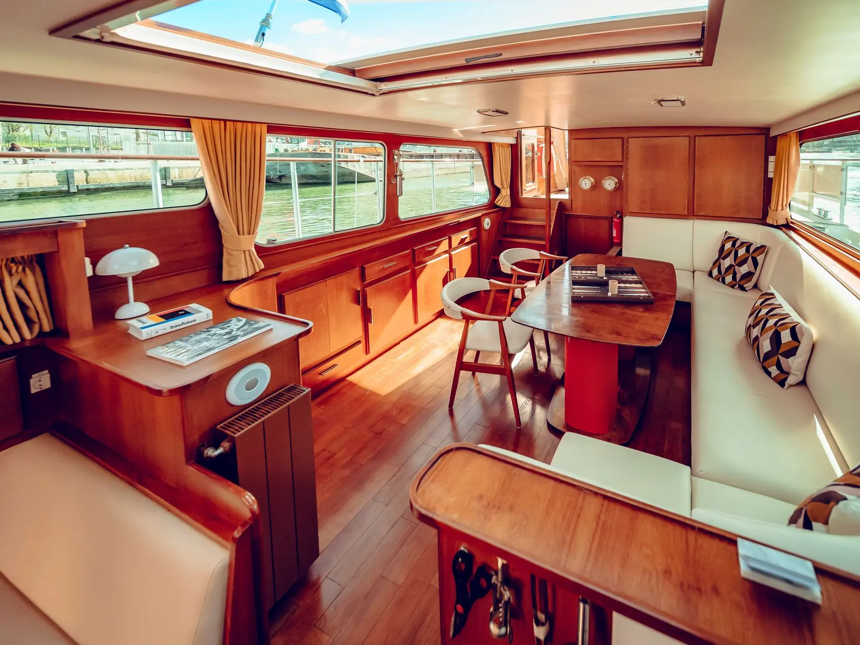 Dolce Vita — U kunt genieten van een beschutte cabine met panoramische ramen en een bimini die het achterdek bedekt. Er zijn ook grote transparante parasols beschikbaar als u buiten wilt zitten. Als er zware regen wordt voorspeld, kunt u tot 72 uur voor uw cruise kosteloos omboeken.