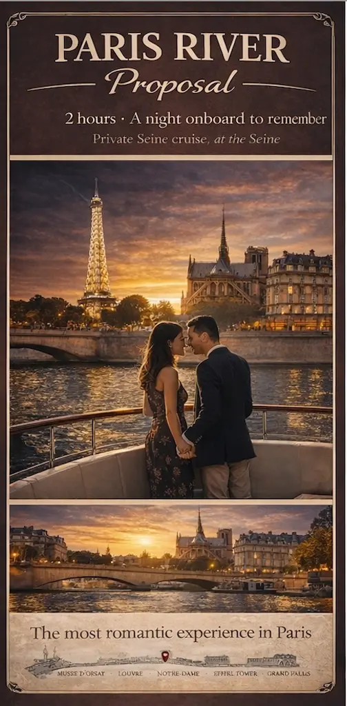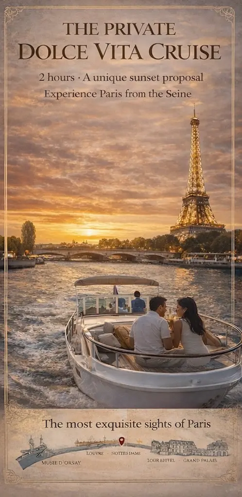 For those planning a marriage proposal, this experience provides an unparalleled setting. Imagine proposing under the illuminated Eiffel Tower, with the city lights dancing on the water and a bottle of champagne to celebrate the moment. Every detail can be arranged to ensure a perfect and unforgettable experience.